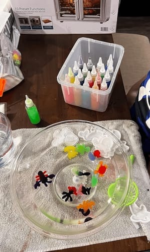 Moja 9-ročná dcéra ju miluje! Naozaj jednoduché na výrobu. Niektoré farbiace tekutiny sú veľmi viskózne a niekedy sa netvoria. Je to naozaj zábavné.